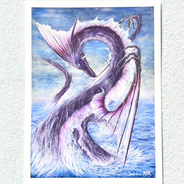 幻想竜『リヴァイアサン』アートポスター|深海から現れしドラゴンの幻想複製画【幻想獣章】(額なしタイプ)