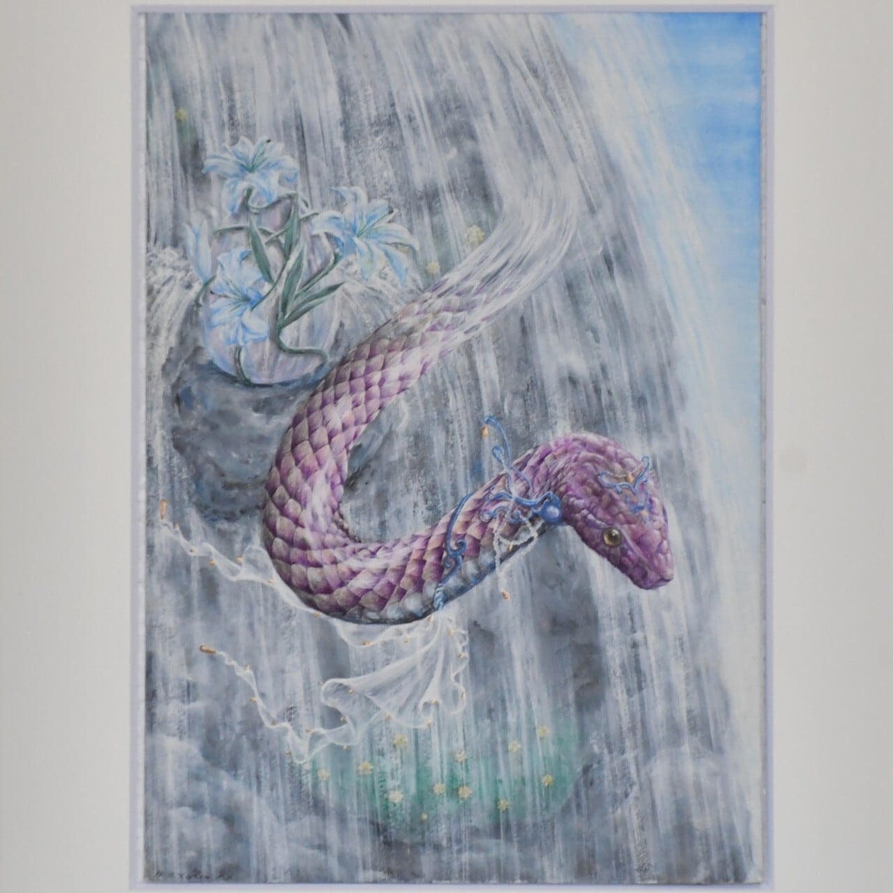 リヴァイアサン複製画|荒ぶる海を統べる幻獣を描いた幻想アートプリント 本作品は、作家自身の監修のもとで高精細ジクレー技術により再現された複製画。 原画の筆致や水彩の透明感を忠実に残し、一枚ずつ丁寧に仕上げられた直販限定の特別仕様です。 「リヴァイアサン」は、深海に潜む神話の幻獣。 荒ぶるうねりの中に宿る、圧倒的な力と静謐な気配。 幻想的な海の世界を纏わせることで、その存在が持つ“強さと繊細さ”を際立たせました。 【作品に込めた想い】 幻想獣章:リヴァイアサン ― ドラゴンの章 静かな深海から浮かび上がる、巨大な影。 光が差し込むたびに暗紫色の鱗が微かに輝き、深淵の世界を照らす。 やがて海が大きくうねり、波が噴き上がる。 姿を現した巨体 ― それは、神話に語られる畏怖の幻獣「リヴァイアサン」。 その名は「ねじれ」「渦」を意味し、秩序を超えた存在感を放ちます。 【作品の魅力と表現】 半透明のヒレの軌跡と胴体のうねりが生む構図は、 躍動する力と均衡を保つ繊細さの両立を描いたもの。 濃淡のある紫と透けるヒレの質感は、 荒々しさの中にある静かな美を浮かび上がらせます。 揺らぐ水面と波しぶきは、制御されながらも解き放たれたエネルギーの象徴です。 【仕様・素材について】 ・ジクレー印刷による高精細複製画 ・額縁:樹脂製/塗装仕上げ(装飾仕様) ・額縁外側の寸法:縦417mm×横326mm×厚さ15mm ・表面カバー:1.8mm UVカット強化アクリル ・吊り紐付き(設置用ピン・フックは付属しません) 【品質と仕上げへのこだわり】 ジクレー印刷とは、原画の色彩や筆致を限りなく忠実に再現する最高級技術。 本作品は、ドイツ最古の製紙会社・ハーネミューレ社のGOLD認証工房で制作。 水彩原画特有の透明感とグラデーションをそのままに、 「ジャーマンエッチング」紙を採用することで、しっとりとした質感と深い発色を実現。 作家自身が色校正から仕上げまで監修し、 直販作品ならではの品質と誠実な仕上がりをお約束します。 【梱包と発送について】 額装済みで丁寧に梱包し、安全にお届けいたします。 発送まで10日前後(土日祝を除く)のお時間をいただいております。 【飾り方と空間演出】 荒ぶる海と神秘を纏いながら、その奥にある緻密な造形美を感じさせる一枚。 装飾額が光を反射し、聖堂に掲げられた肖像のような存在感を放ちます。 幻想を纏うことで引き出された、強さと繊細さが空間に静かに響きます。 作家直販の手仕事ならではの確かな品質とともに深海の幻想を永くお楽しみください。 気高きドラゴン、リヴァイアサンをあなたのもとへ。