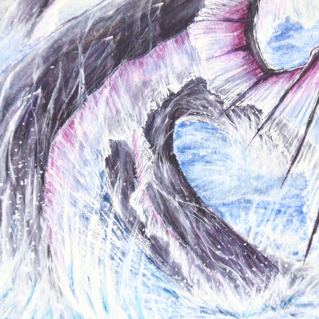 そのうねる巨体は圧倒的な力を示しながらも、繊細に重ねられた色層が静かな均衡を保っています。